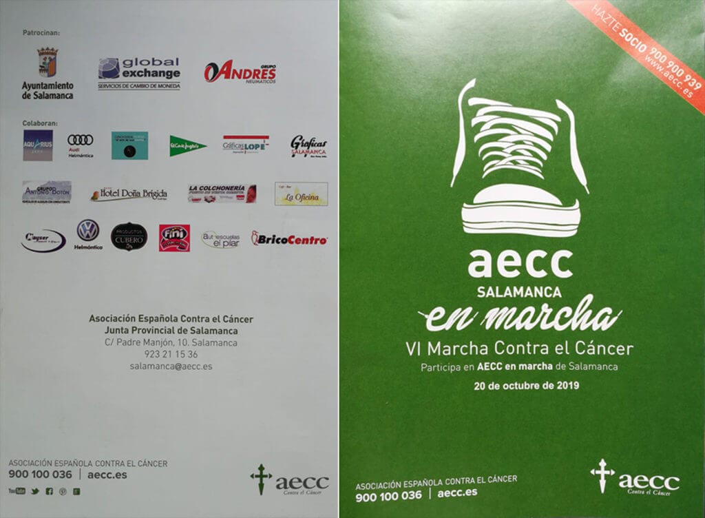 No queremos faltar a la cita anual de la Asociación Española contra el Cáncer de Salamanca y nos mantenemos fieles al patrocinio de la VI Marcha Contra el Cáncer, que se celebra el próximo 20 de octubre en la ciudad.