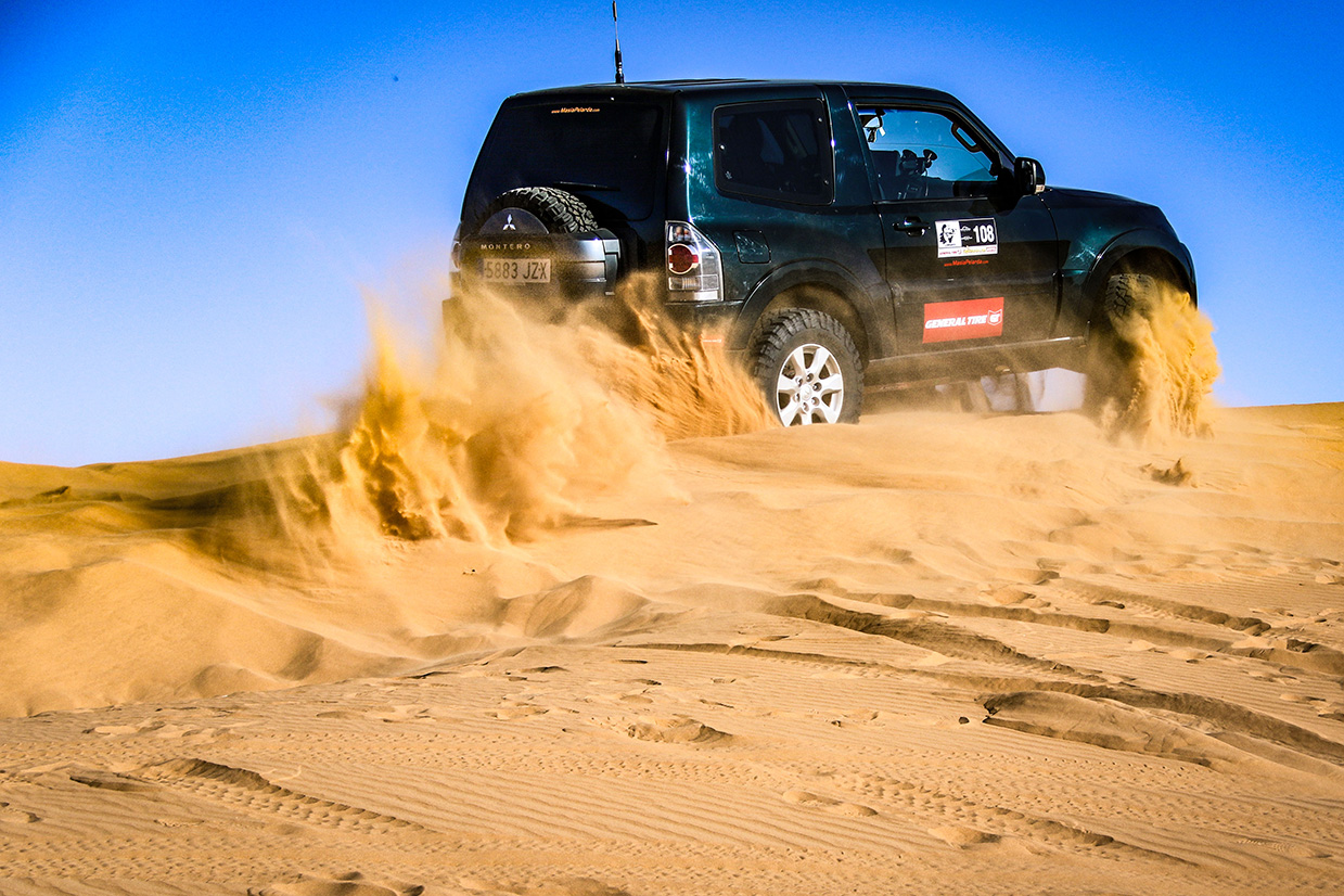 En la presente edición tan solo ha existido la categoría 4×4 Todoterreno, dejando a tan solo 3 participantes con opciones a podio final tras las primeras etapas, donde destacaba un veterano Toyota Rav 4 de primera generación luchando entre auténticos 4×4. Finalmente alcanzo el alto del Cajón Javier Sánchez con su veterano Mitsubishi Montero V60 guiado por su copiloto María Amor con una prueba regular y consistente sin cometer errores, cogiendo todos los WP y apurando el tiempo disponible para las etapas. Quien se lo puso muy difícil fue el de Requena Sergio Navarro que, de no ser por algunos descuidos con los excesos de velocidad que le penalizaron, se habría llevado el máximo trofeo, pues en la última etapa los cordones de dunas complicados del Erg Znegui obligaron a abandonar algunos wp que dejaron fuera de la lucha a Masip/Bescos con su Rav 4. Finalmente el trofeo del Juego de Neumáticos General Tire se va para los turolenses Javier Sánchez y María Amor Escudero.